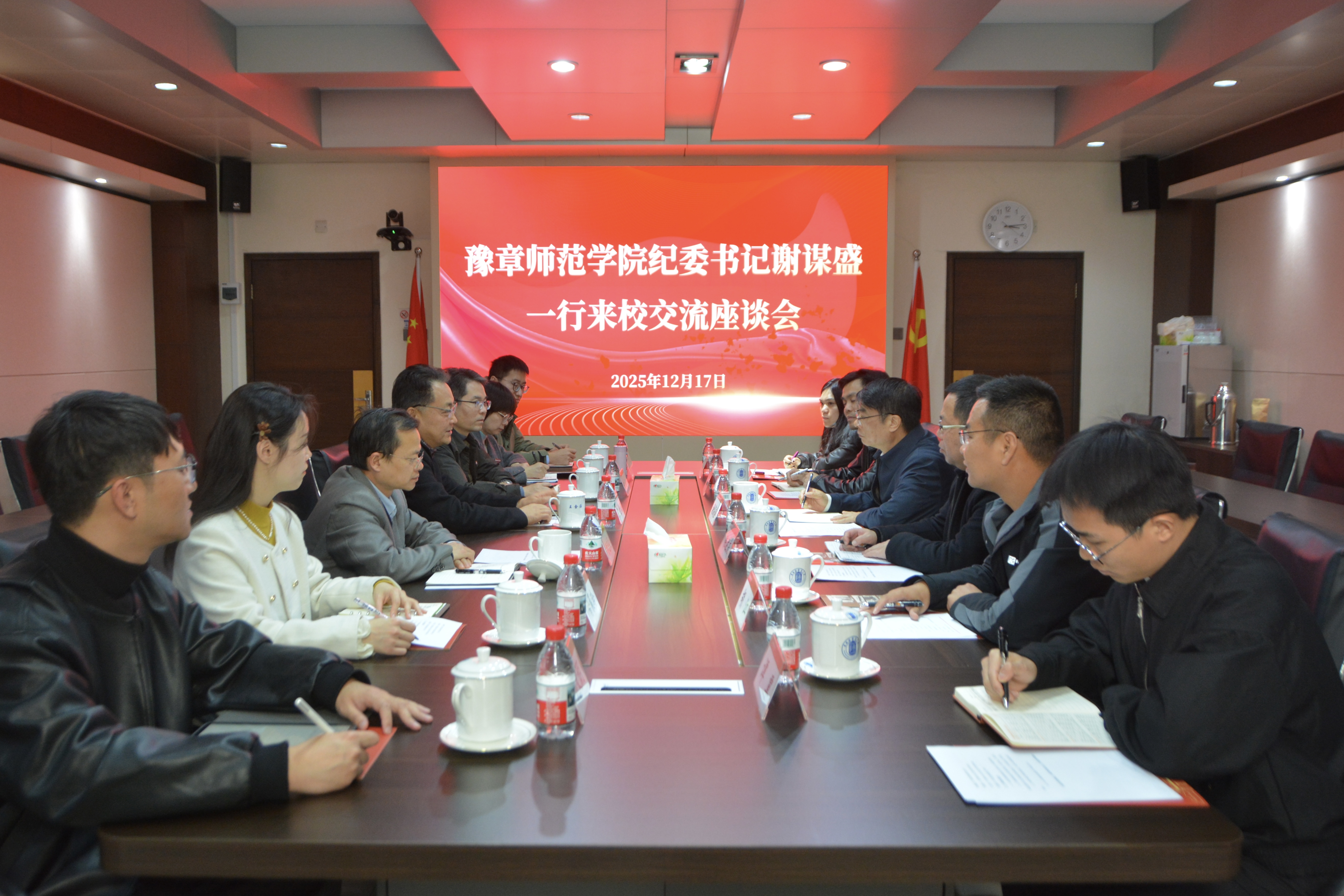 12月17日下午,豫章师范学院党委委员、纪委书记谢谋盛一行来我校交流调研纪检监察工作。校党委常委、纪委书记、省监委驻校监察专员王金海热情接待了谢谋盛一行,并组织座谈。会前,校党委书记蒲守智会见了谢谋盛一行。