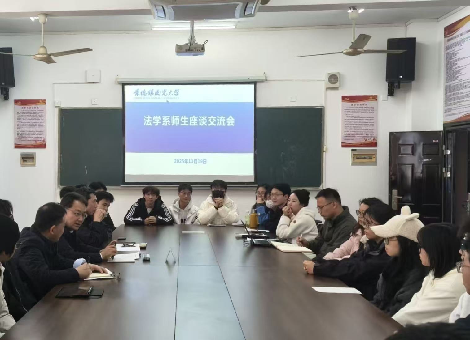 王金海联系的学生班级及法学系教师代表30余人参加座谈交流。(审核/刘文玥 喻晨玲 黄志荣)