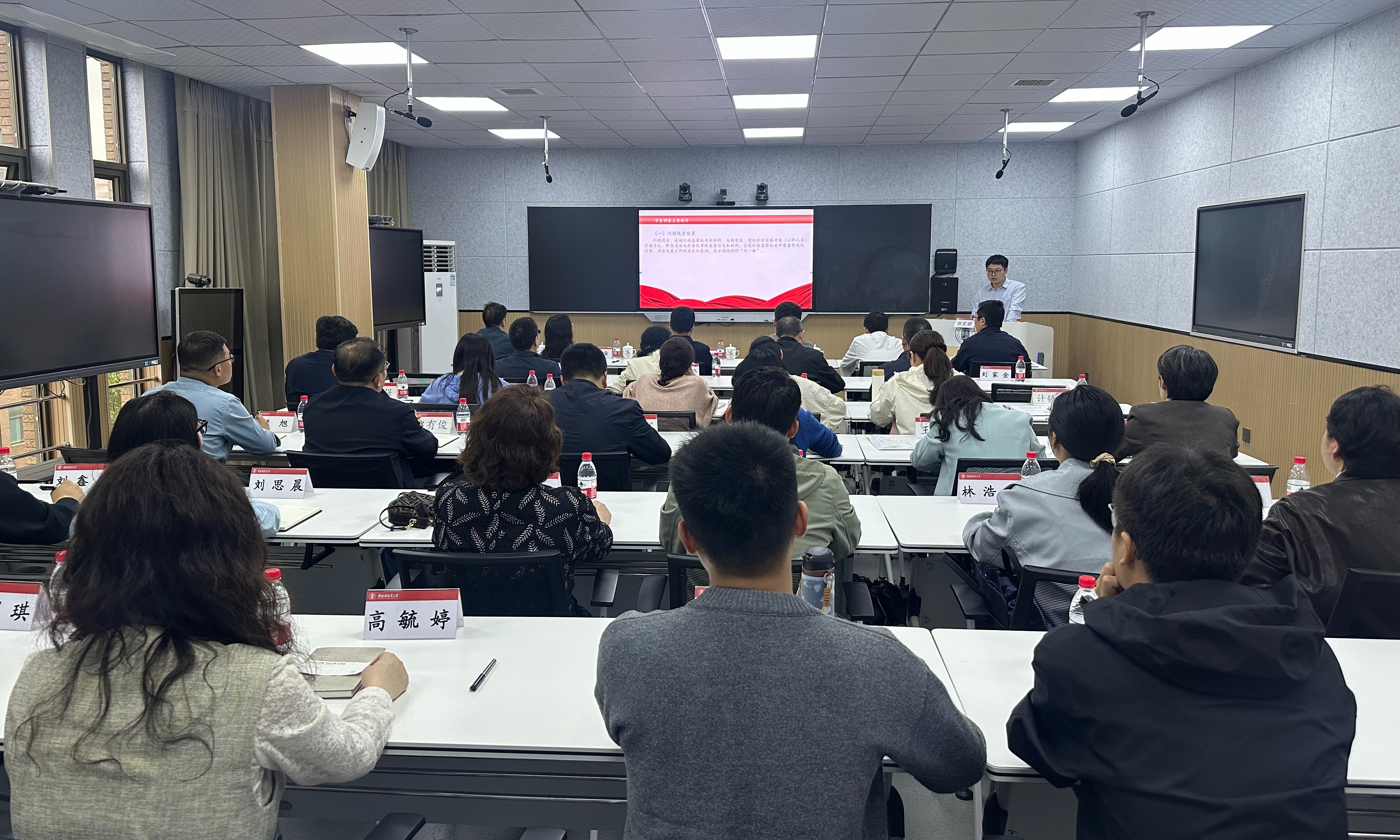 21日下午,三所高校纪检干部在我校第十六期“翠湖纪法讲堂”上,就“审查调查主要程序和实践做法”主题开展了联学研讨。我校纪检干部张宽骥结合一线办案的实战经验和高校纪检监察的工作实际,从审查调查的主要程序、实践做法、个人体会三个维度,对这个主题进行了系统讲解和分享。