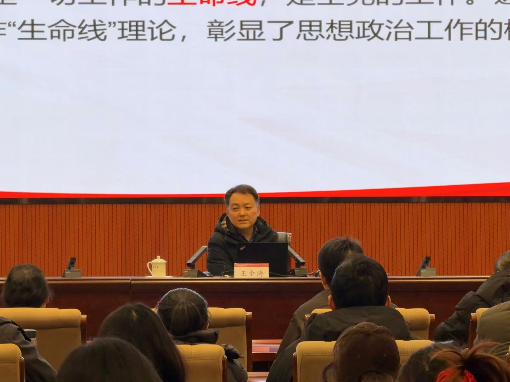 针对《条例》的重大意义、核心内容和实践要求,王金海进行了深入浅出的解读,重点阐述了《条例》的背景和意义、主要框架、核心遵循、总体要求、基本原则、方式方法等内容。他强调,要深入学习贯彻《条例》,广泛宣传,加强对思想政治工作开展情况的督促检查。专兼职纪检监察干部是做人的工作,更要率先垂范、以身作则,带头深入学习《条例》内容,自觉用以指导实践、推动工作,确保纪检监察工作始终沿着正确方向前进。要加强对思想政治工作开展情况的监督,对思想政治工作干部不履行或者不正确履行职责,造成不良影响或者严重后果的,依规依纪追究责任,确保《条例》落到实处。
